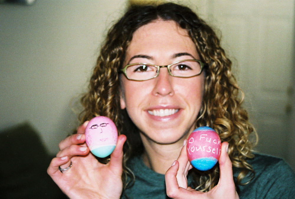 Greetings from beyond the land of stale peeps, ‘Redheads… I hope everyone enjoyed their Easter Sunday…I certainly did. As a Jew without an alibi, I thought it best to take part in one of the more fun activities of the holiday…no, not looking for Jesus…dying eggs. I got together with my good pals, Chris and Allyson, for a hard boiled afternoon of…crayons and bunny stickers…oh, we know how to party. After a couple test eggs, we decided to attempt egg likenesses of ourselves…they’re not eggsact, but they turned out about as well as could be eggspected…I’ll stop…