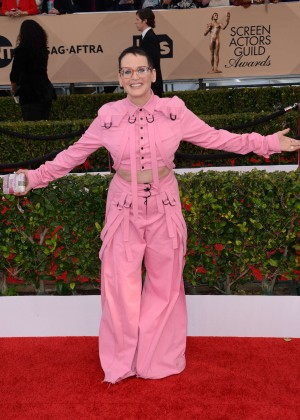 Just because you wouldn’t be caught dead in that outfit doesn’t make it wrong for her. If she showed up to each individual funeral wearing that, I might agree with you, but this is the SAG Awards. Much like the Golden Globes, this is an excuse for the beautiful people to get drunk and tell each other how brave they are. Leonardo DiCaprio was vaping like he was preparing for his next role as the Caterpillar from Alice in Wonderland. The mood wasn’t exactly somber. It’s a celebration of lives of the recently passed and a contest to see which of them gets the most applause. Think of it as if her shirt was lowered to half-staff. The people who are giving her a hard time are also probably the same people who are miffed that Uggie the Dog wasn’t included in the tribute.