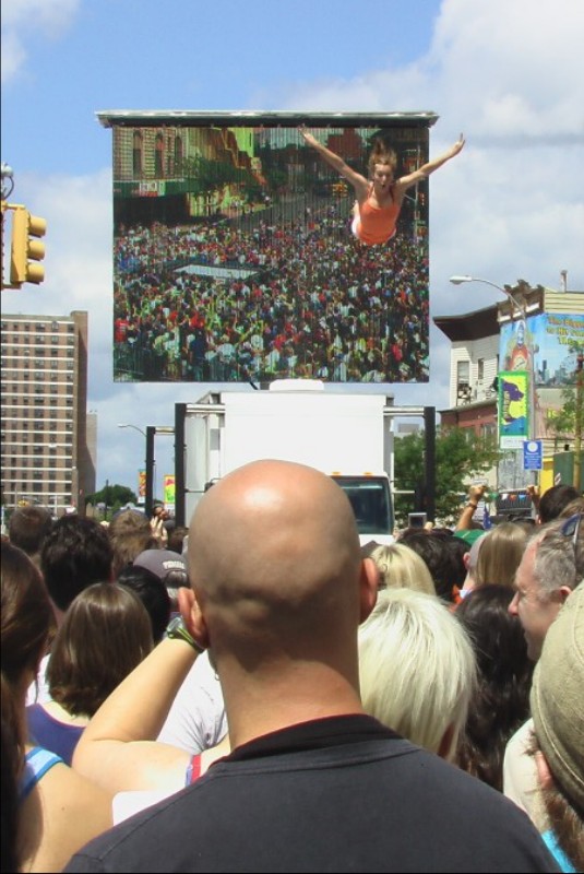 There was plenty of pregame entertainment to keep the mob in check. The circus was in town, and they lent their trampoline artist to wow the crowd with some death defying…bouncing really high…