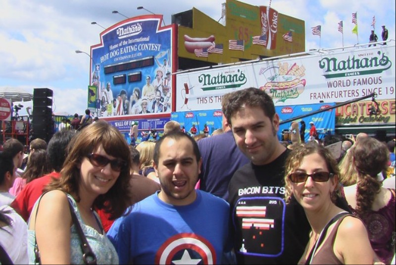 Speaking of way cool technology that can keep you in a perpetual loop, let’s hop in the fuzzy recollection machine and take a trip back to July 4th to strain our eyes at the blurred and hazy events. To celebrate our nation’s independence, my intrepid band of friends and I took a trip to Coney Island to witness the gluttonous grudge match known as the Nathan’s Famous Fourth of July International Hot Dog Eating Contest